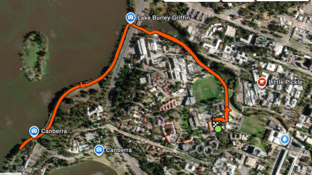 Start location: Three Sides Coffee, ANU Law School